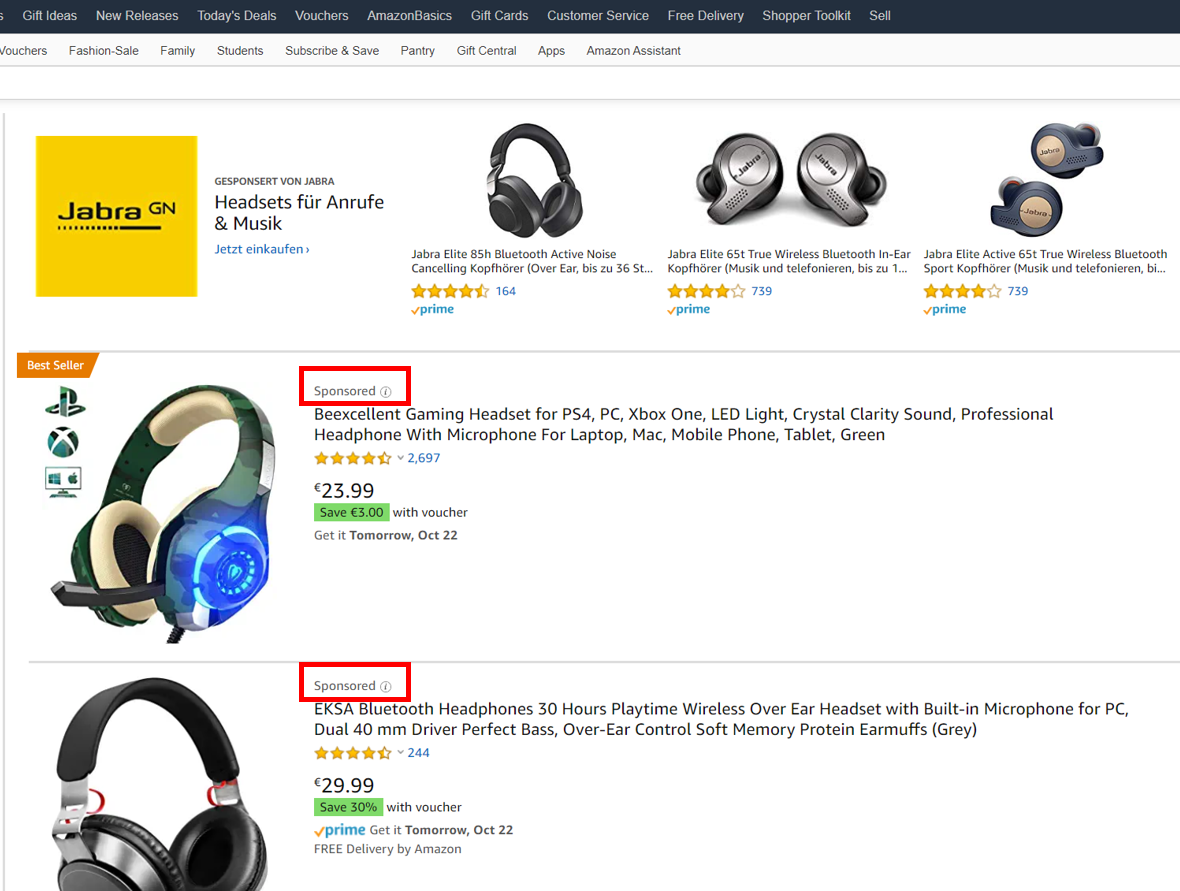 Sponsored Products sind für die meisten Marken weiterhin der wichtigste Umsatztreiber. Diese Anzeigen erscheinen direkt in den Suchergebnissen und auf Produktdetailseiten und führen Käufer unmittelbar zum jeweiligen Produktlisting. Sie eignen sich besonders für organisches Ranking, Wettbewerber-Targeting und Produktlaunches.